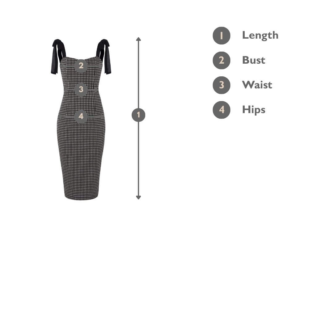 Abilene Houndstooth Pencil Dress with Ribbon Straps in Black Houndstooth