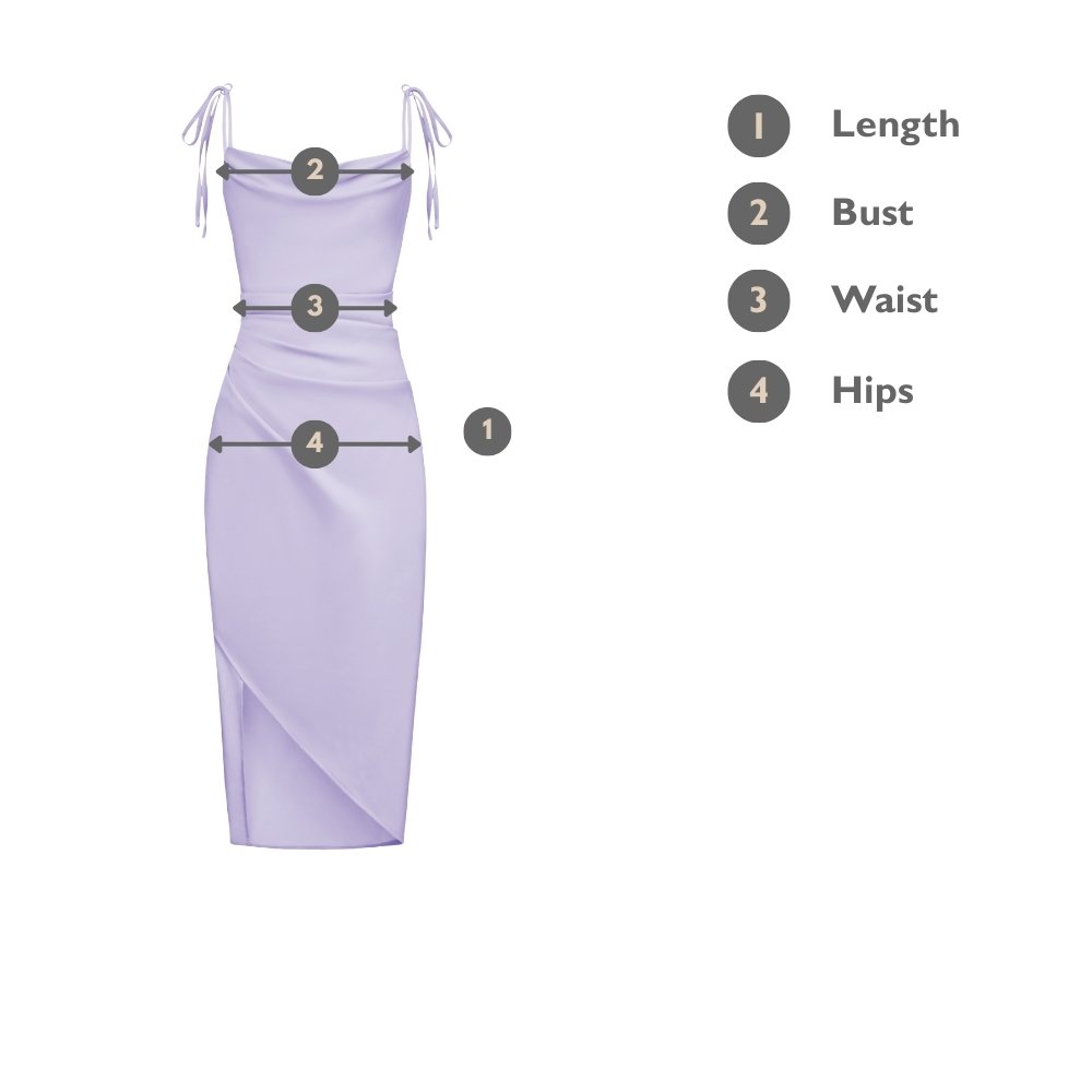 This dress is finished with thoughtful details: the asymmetrical side slit offers ease of movement, while the midi length adds versatility, making it easy to dress up or down. Fixed adjustable ribbon ties lend a feminine touch without compromising on comfort and security, and an asymmetrical hem brings an angular detail, adding character to this classic feminine piece.