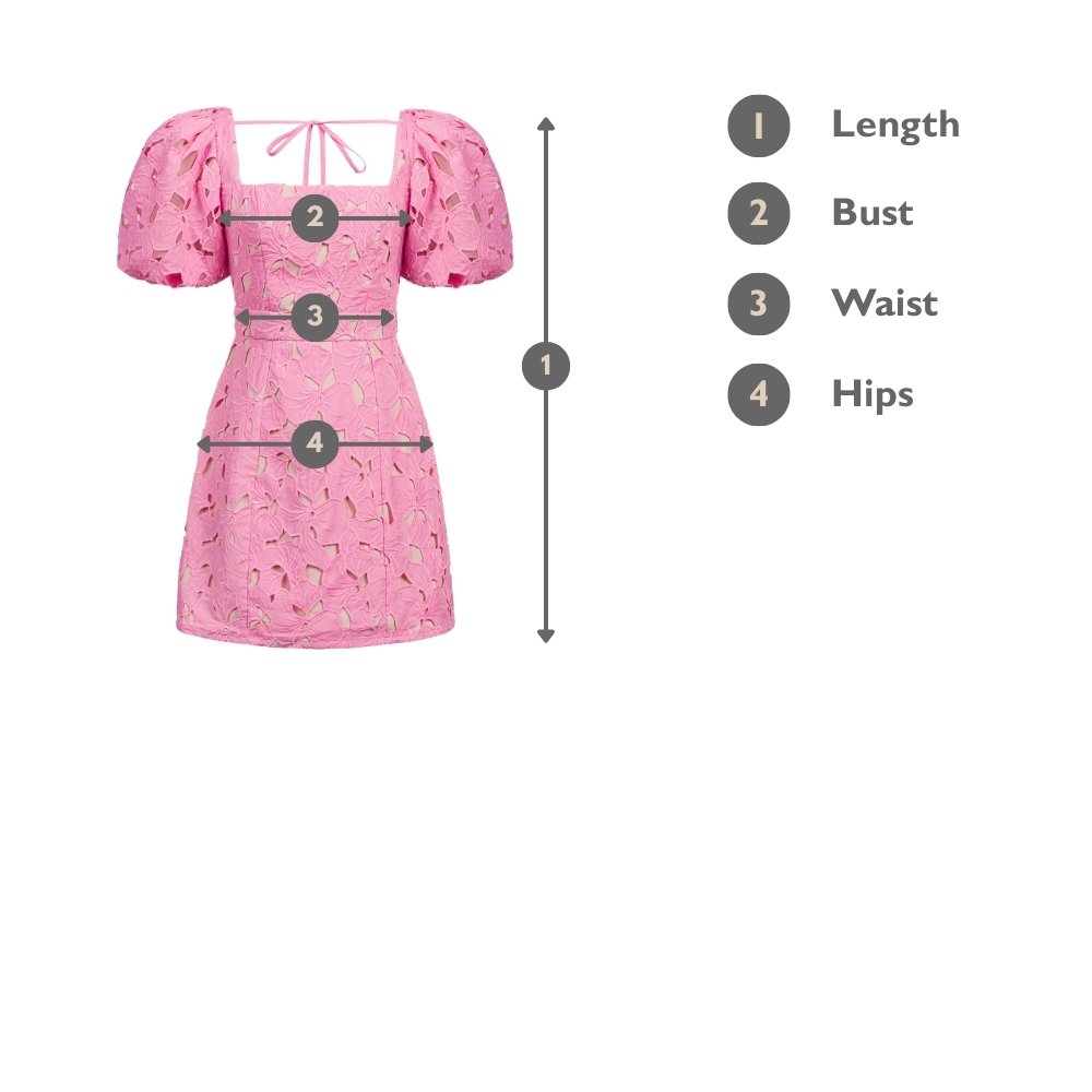 Turn heads with the low back design, complete with an adjustable ribbon tie for a personalized fit that’s both sweet and practical. What makes this dress even more perfect is the padded bust which is a must for low back designs! The straight skirt silhouette creates a slimming effect on the hips, enhancing your natural shape with grace. Crafted from cut-out cotton, this piece shines on its own, requiring minimal accessorizing while offering texture and dimension that make it stand out.