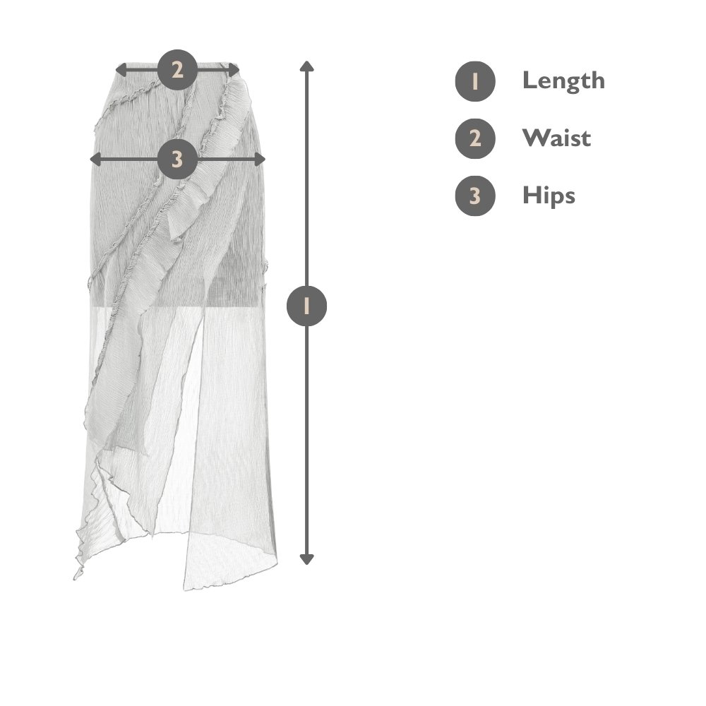 Light, flowy, and feminine: the Arwen Panel Midi Skirt is designed to move with grace. The high-waisted fit flatters your silhouette, while multidimensional panels create gentle texture and charm. A front slit ensures ease of movement, and the short inner lining keeps the look airy and breathable. Crafted from light textured chiffon, this midi is perfect for everything from weekend brunches to dressier occasions.