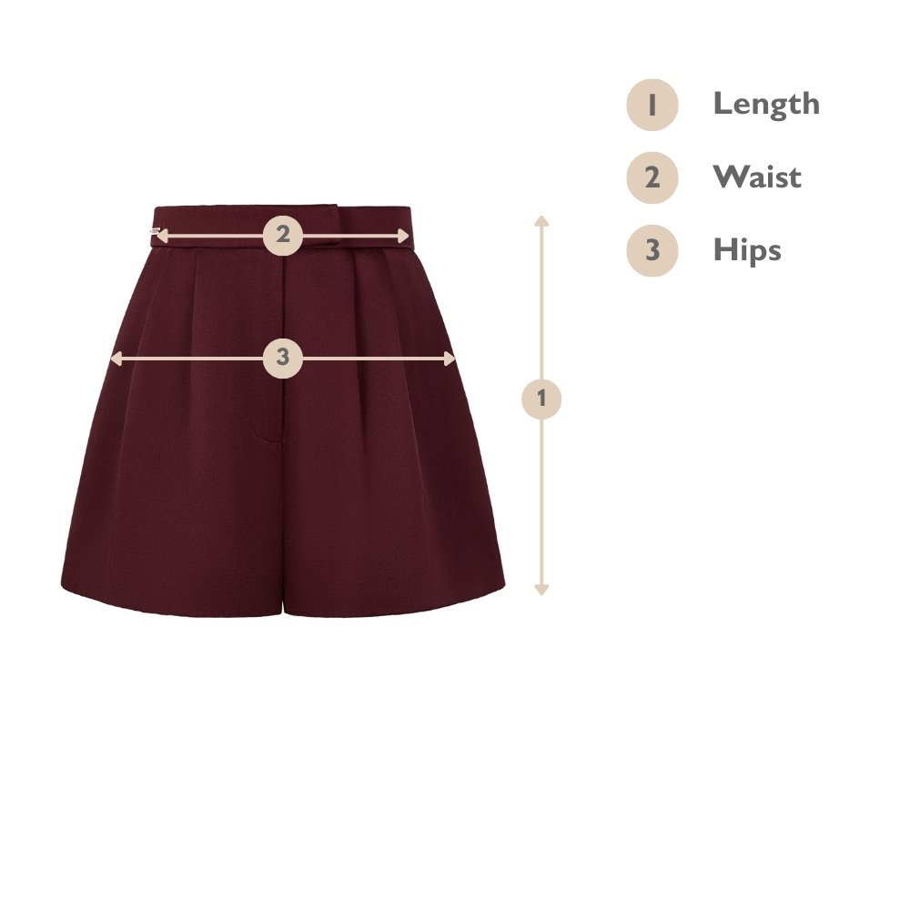 Aviva Sateen Pleated High Waist Shorts in Pinot Noir
