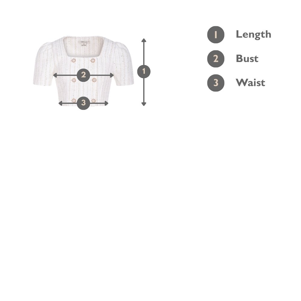 Upgrade your wardrobe with our Blaire Double-Breasted Tweed Cropped Top. Its square neckline exudes sophistication, while the delicate pearl buttons add a touch of refinement. Perfect for warmer days, the short sleeves with slight puff at the shoulders keep you cool and comfy. Crafted from carefully selected tweed that prioritizes comfort to your skin. Pair it with your fav pair of jeans for a chic and laidback look and pair it with our Delphine Tweed Shorts for an effortless ensemble.