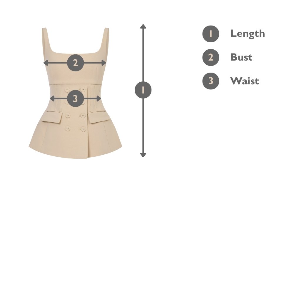 A modern take on tailoring with feminine details. The Calina Padded Scoop Neck Tailored Top features a structured scoop neckline that frames your collarbones beautifully, complemented by a padded bust for all-day ease. The wide U-shape neckline softens the look, while the long line length and defined waist create a flattering silhouette and the invisible zipper ensures a polished finish. Soft corsetting shapes your figure without feeling restrictive, making this piece both sleek and comfortable. Perfect for pairing with tailored bottoms or skirts for an effortlessly refined outfit.