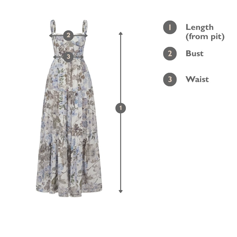 Printed in 'Enchanted Blooms,' this ethereal piece is a must-have addition to your wardrobe. Tailored for those who appreciate a custom fit, it features adjustable ties at the back and shoulder straps for personalised comfort. The thick straps gracefully cover your underarms, while the sweetheart neckline is universally flattering. Delicate scallop trims accentuate the neckline, adding a charming allure to the maxi dress. Equipped with functional pockets, the fully-lined tiered skirting adds volume and a touch of drama.