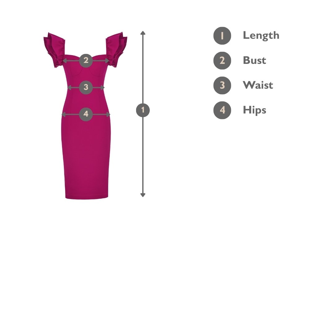 Carol Flutter Shoulder Pencil Dress in Royal Fuchsia