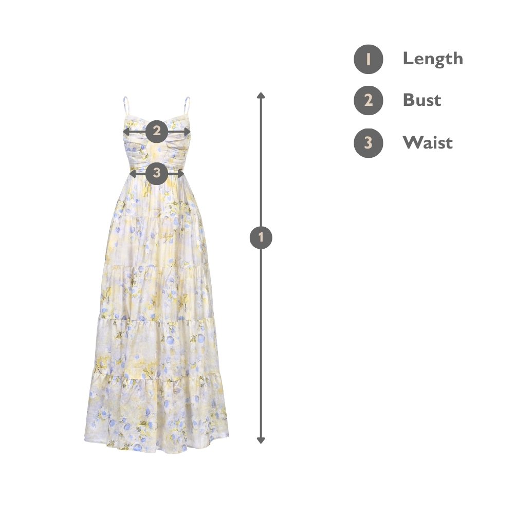 Ceres returns in a fresh fabric and new print, with the same easy elegance that made it a favourite. The pleated bodice shapes the upper frame with soft structure, while adjustable straps let you fine-tune the fit. Finished with a padded bust, a smocked back for comfort, and pockets for ease, it’s a maxi that wears beautifully from daytime plans to dressed-up evenings.