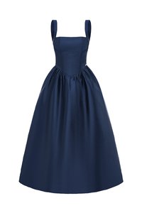 Colette Padded Square Neck Midi Dress in Navy Blue