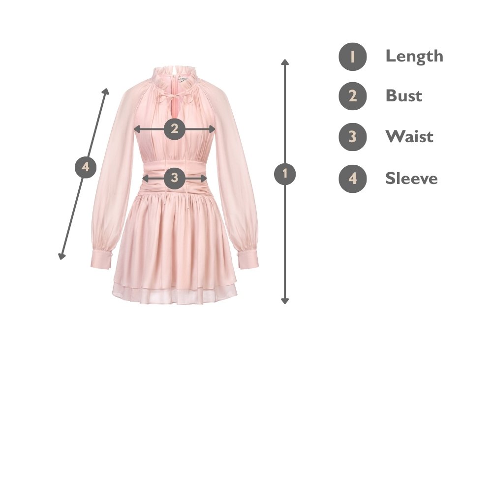 Cosette is a softly structured mini with airy volume throughout. Billowy sleeves add light coverage, while a ruched waist shapes the silhouette comfortably. The tiered skirt brings movement and softness to the overall look. A romantic piece that stays light and never fussy.