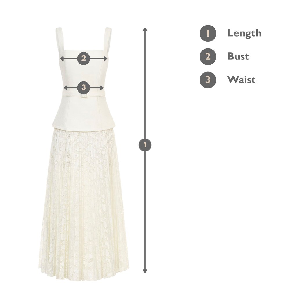 Elegant and timeless, the Dasom Square Neck Pleated Midi Dress blends classic structure with soft femininity. The square neckline beautifully frames your collarbones, while the thick straps offer comfort and coverage. A complimentary belt cinches the waist, creating a flattering hourglass illusion, and the pleated lace skirt adds graceful movement with every step.