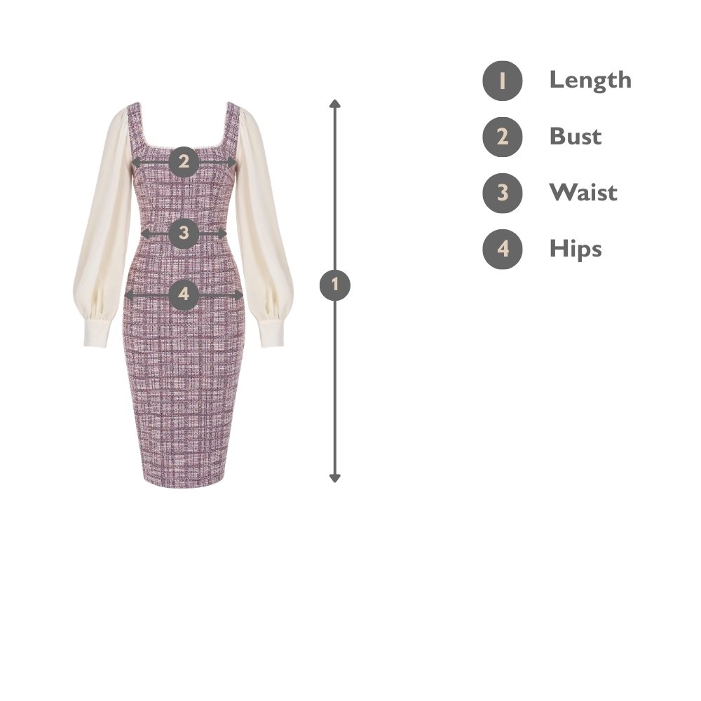 Dawn is the perfect dress for the modern working woman who wants to look both polished and effortless. This sophisticated pencil dress features soft drapey chiffon sleeves that is a little sheer, which adds an element of femininity to the overall design. Delicate bejewelled trimmings run across the front neckline, creating a simple yet elegant detail. It's perfect for a day in the office or a night out with colleagues. Made with premium stretchy tweed, it gives the dress a touch of class while the subtle detailing on the sleeves adds a touch of softness to the dress, making it a standout piece in your wardrobe. Wear it with your favorite pair of heels and a clutch for a polished and put-together look that is sure to turn heads. With Dawn, you'll be the center of attention at any event. So many of you ladies requested a pencil dress with sleeves, and now we deliver! We hope you love Dawn as much as we did creating her.