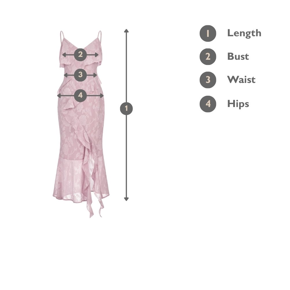 Indulge in the enchanting allure of the Dovie Frill Slip Midi Dress. Its cascading frills gracefully wrap your figure, infusing every movement with a sense of romance and softness. The V neckline accentuates your décolletage and collarbones, adding a touch of femininity to Dovie's charm.