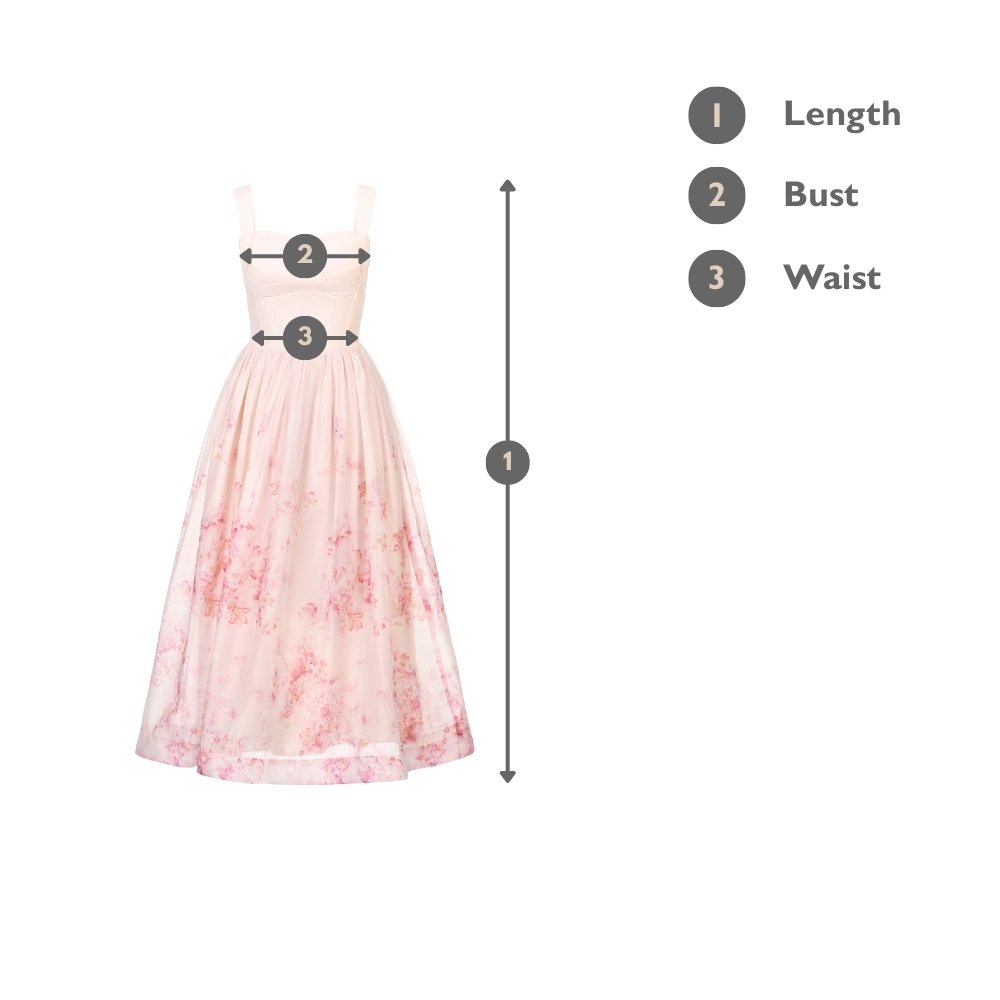 Dream Pleated Bust Soft Corset Midi Dress in Rose Watercolour Waltz