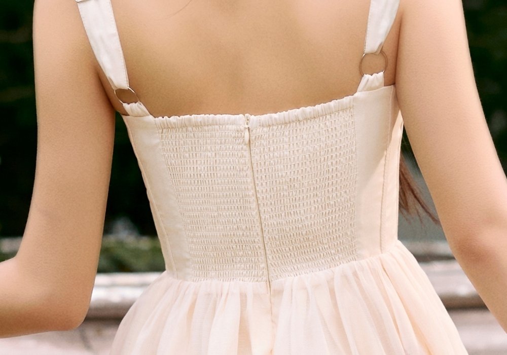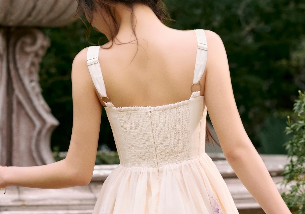 Dream is a romantic midi built on soft structure and volume. The sweetheart neckline and gentle corsetry shape the bodice, while the voluminous skirt creates an elegant flow. A smocked back ensures comfort throughout the day. A classic silhouette made to feel light and wearable.