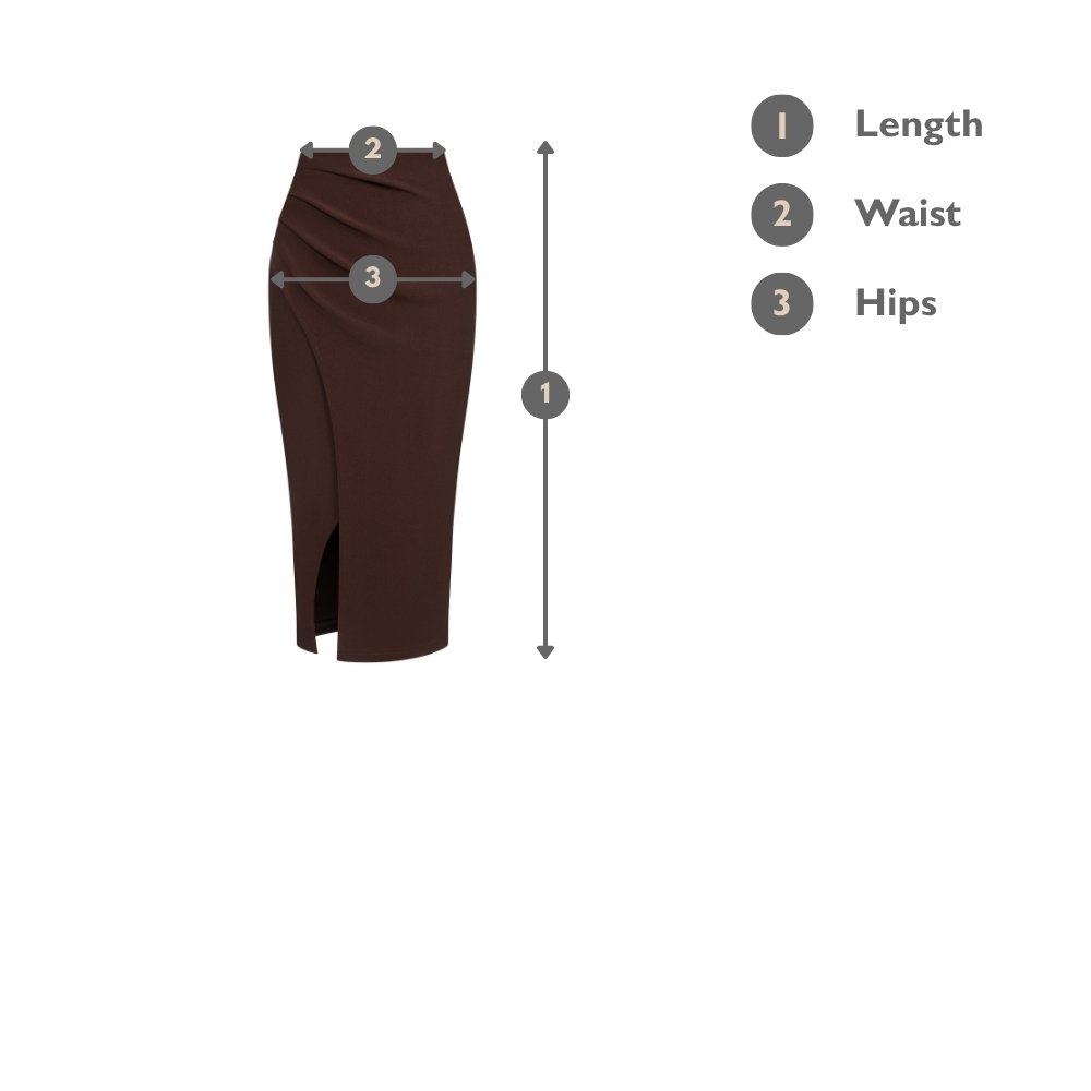 Edna Asymmetrical Ruched Pencil Skirt in Chocolate