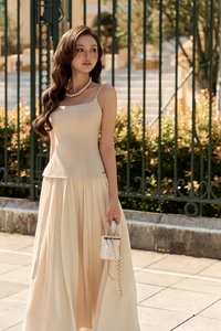 Elegant, light, and endlessly versatile, the Eleanor Padded Contrast Maxi Dress is made for days when you want to look put together with minimal effort. The clean, minimalistic bodice is softly cinched at the waist to create an illusion of a slimmer figure, while the adjustable straps allow you to tailor the fit to your frame. Falling from the waist, the contrast flowy skirt moves beautifully with every step, giving the dress an airy, romantic feel that works for both the office and special occasions. Finished with a padded bust for fuss-free support and an invisible zipper at the back for a seamless look, Eleanor is that easy, polished maxi you will keep reaching for again and again.