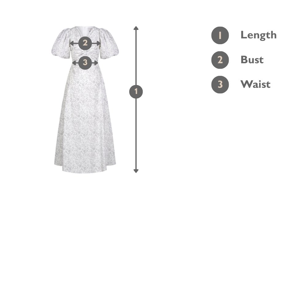 Ellie Puffy Sleeves Midi Dress in Grey Toile de Jouy