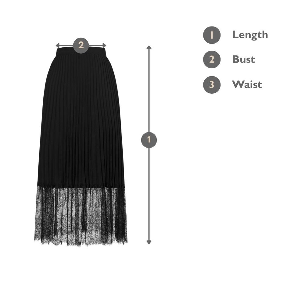 Step into elegance with the Elora Pleated Lace Panel Midi Skirt—a harmonious blend of fine pleats and delicate lace inserts. Gracefully swaying with your every step, its midi length exudes sophistication for any occasion. The lace panels offer a subtle allure, adding romance to your ensemble. Versatile and chic, pair it with the Edith Belted Tailored Vest Top for polished office attire or the Valeria Peplum Tweed Top for a touch of refinement at special events. With Elora, embrace timeless style and effortless charm in every stride.