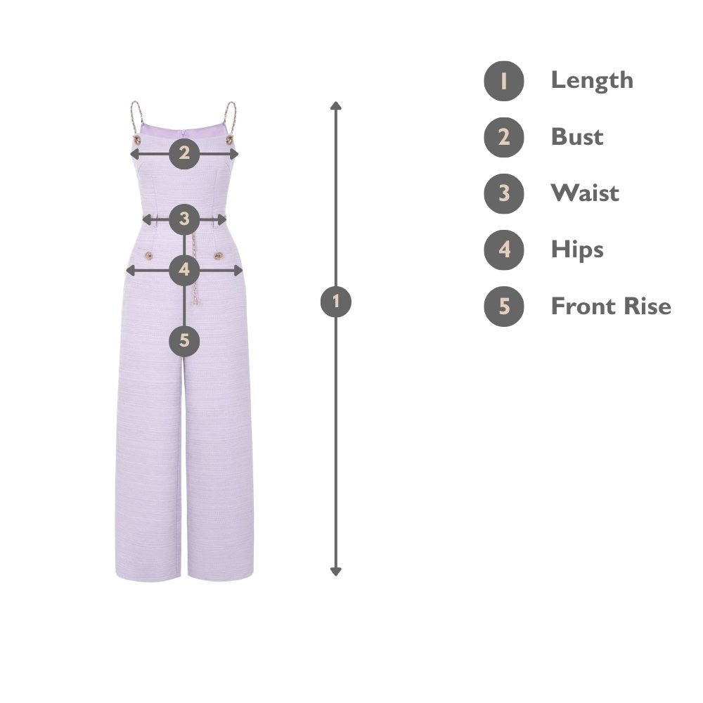 Elevate your style with the Elowyn Tweed Jumpsuit with Belt, a fusion of class and versatility. This chic jumpsuit is perfect as a standalone statement piece or for layering with your favorite lightweight chiffon top. Its sleek chain belt beautifully complements the straps, adding a touch of sophistication. With convenient patch pockets on each side, this jumpsuit combines fashion and functionality seamlessly. The straight-cut pant silhouette not only provides comfort but also elongates your legs, making it an ideal choice for various occasions where you want to make a lasting impression. Step into sophistication and confidence with the Elowyn Tweed Jumpsuit.