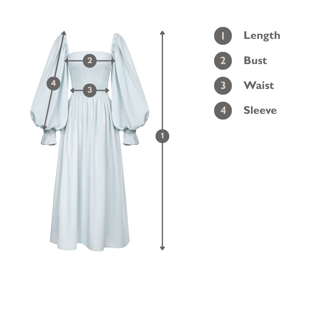 Emme Smocked Long Puff Sleeve Maxi Dress in Baby Blue