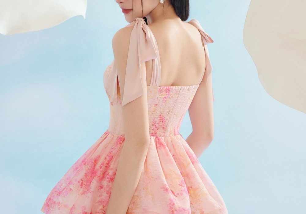 Fiona Removable Ribbon Straps Bustier Mini Dress in Sunny Aurafleur