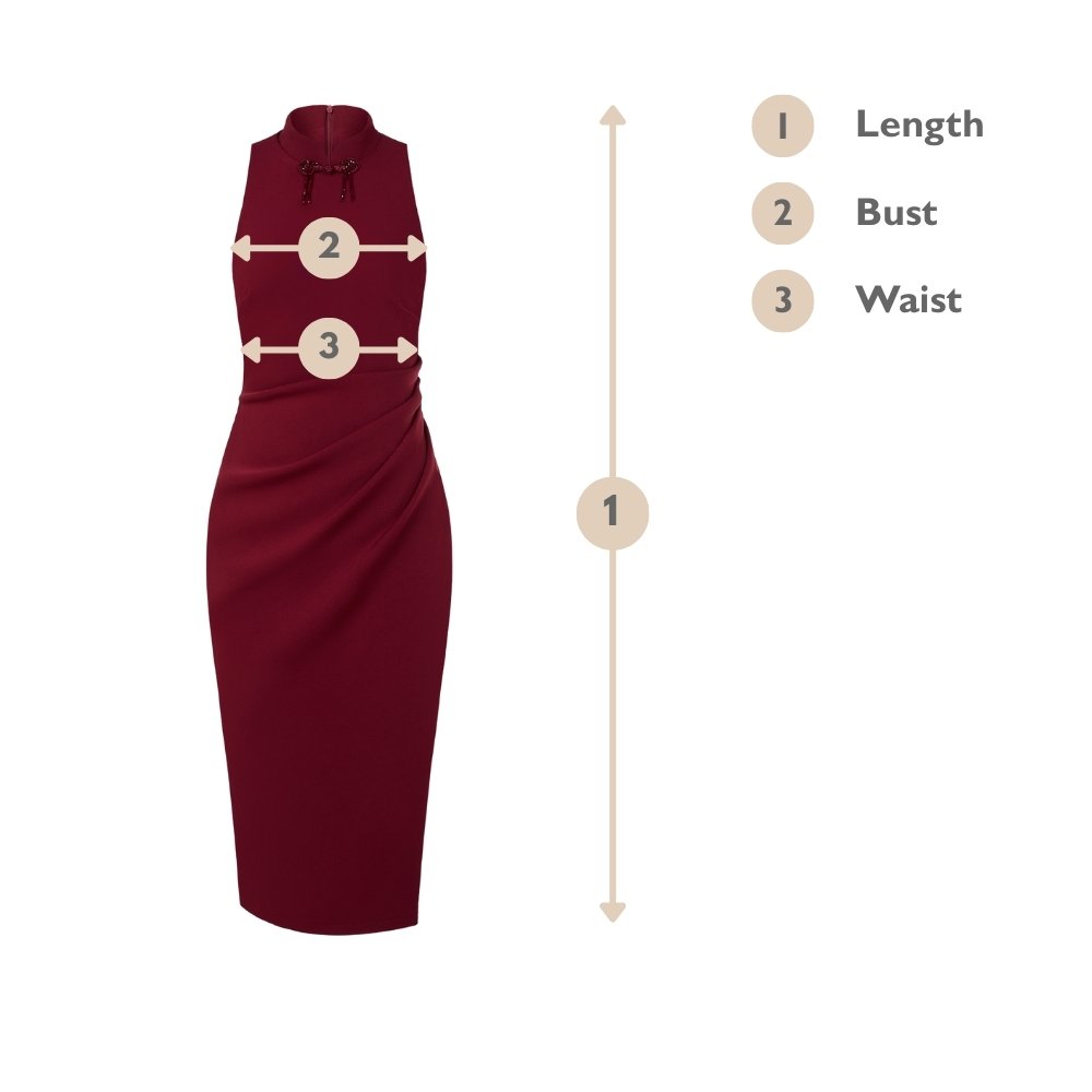 Grace is a fitted pencil dress with a composed, refined silhouette. The mandarin collar gives the neckline a clean, understated frame, while the ruched waist softens the fit and flatters through the midsection. Cut close to the body with a back slit for ease of movement, it holds its shape without feeling restrictive. Finished with a padded bust and invisible zipper, Grace is polished, confident, and quietly striking.