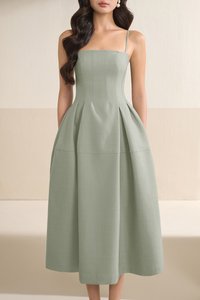 The Illyra Padded Panel Midi Dress features a straight neckline that elegantly frames the collarbones and adjustable straps for a personalized fit. Designed with functional pockets for added practicality, it offers a midi length that can be easily dressed up for formal occasions or styled casually for everyday wear. The padded bust ensures comfort and support, while the highlight of this piece lies in its premium fabric, which adds both sophistication and durability to the design.