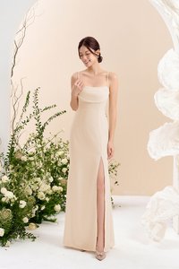 Iris 4-Way Mermaid Slip Padded Maxi Dress in Soft Cream