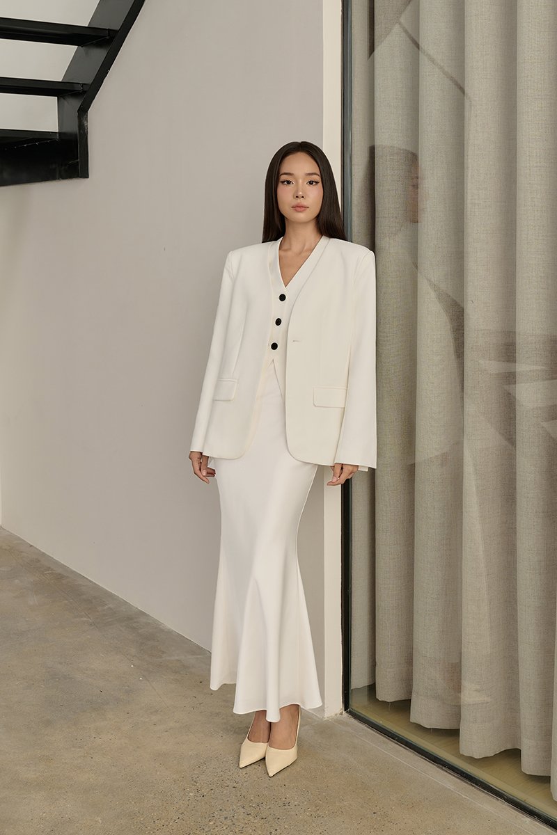 Kaelis Slip Mermaid Maxi Skirt in French Cream