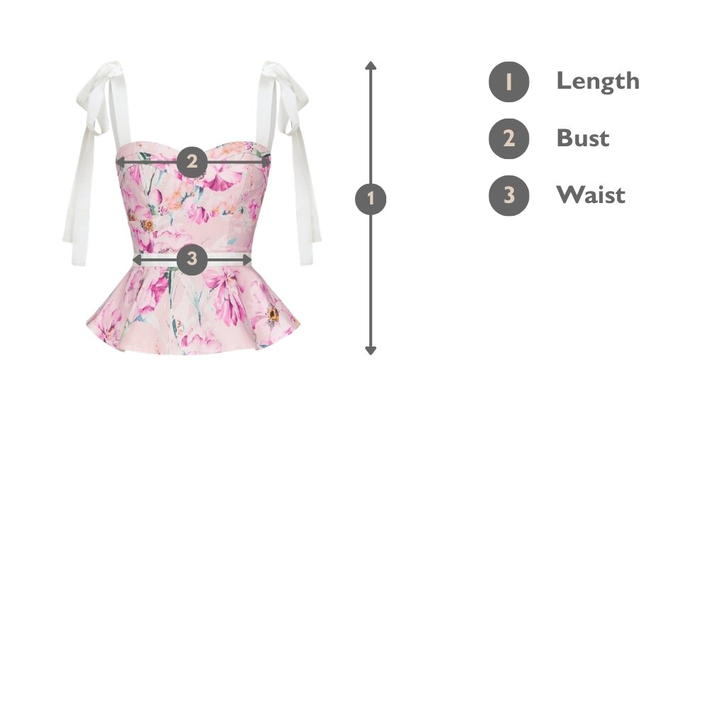 Kaelynn Peplum Top with Ribbon Straps in Pink Floral Painting