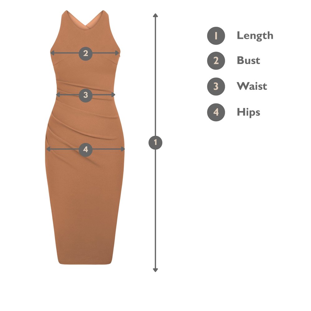 Kiara Padded Crossover Ruched Dress Measurements: