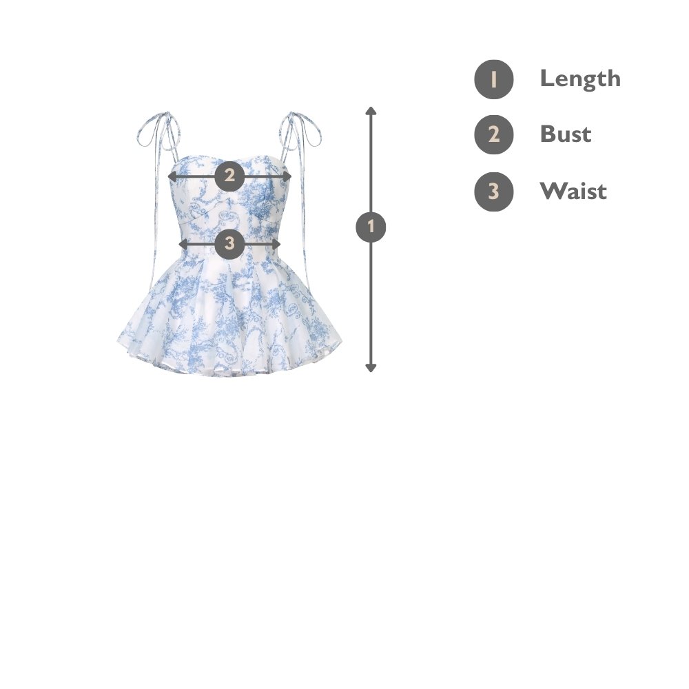 Leni Padded Ribbon Tie Gusset Top in Blue Toile de Jouy
