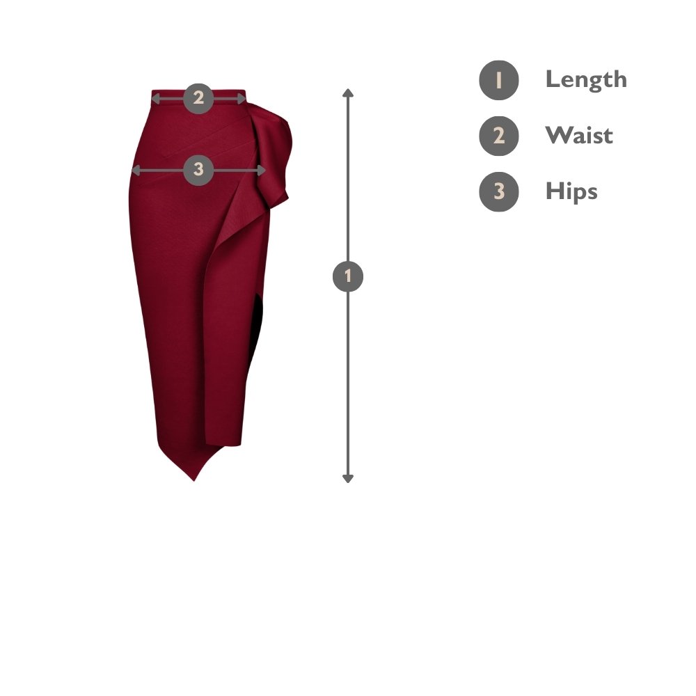 With a slant slit at the side, Leona not only elongates your legs but also ensures ease of movement. The intricacy of the folds adds an avant-garde touch, making it a fashion-forward piece for any occasion. It's designed for those who love to experiment with different tops, allowing you to curate a variety of chic and dynamic looks.