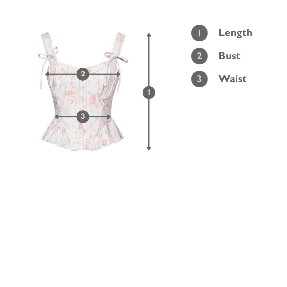 Adorned with the Blooming Trails print, this top captures the essence of a sunlit garden path. Its delicate tapestry of intertwining vines, vibrant blossoms, and soft greenery unfolds in a palette of soft pinks, gentle blues, and sunny yellows, all set against a serene pastel backdrop. Perfect for embracing the dreamy romance of springtime, the Linnea Corset Peplum Top is a must-have for any floral enthusiast.