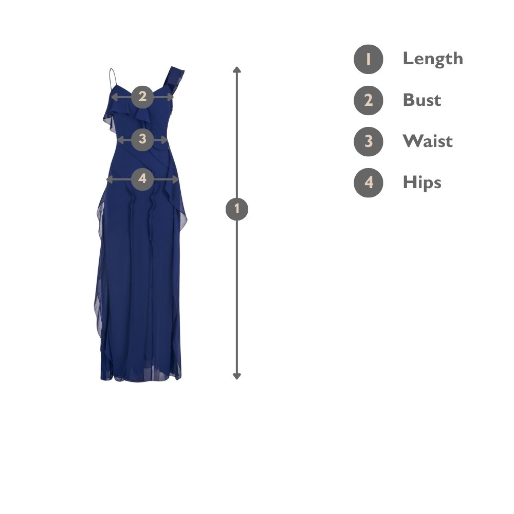 Liora Padded Asymmetrical Frill Maxi Dress in Royal Blue