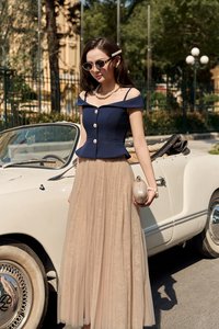 Model & stats: 1.63m tall, Bust 31", Waist 24", Hips 36'". She wears size XS.