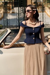 Romantic and flattering, the Lou Off Shoulder Peplum Top is made to highlight your shape in all the right places. The off shoulder neckline showcases your collarbones and shoulders, bringing a soft, feminine focus to your upper frame. A tailored bodice with a cinched waist flows into a gentle peplum that defines and accentuates your waistline, creating a subtle hourglass silhouette. Finished with a front button opening for easy wear and a padded bust for fuss-free styling, this polished top pairs beautifully with anything from sleek trousers to denim for an effortlessly put-together look.