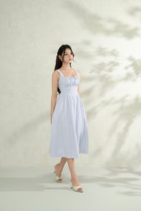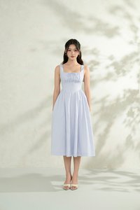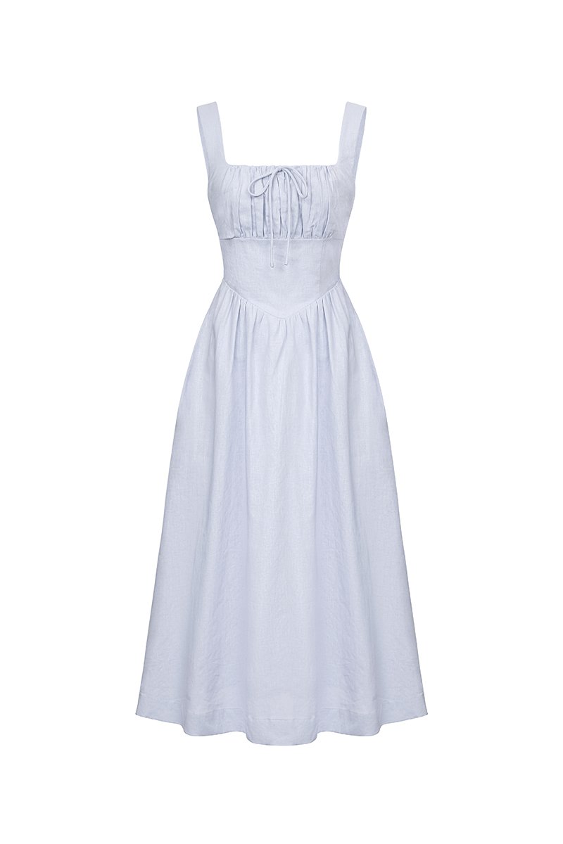 Lucia Padded Milkmaid Midi Dress in Cloud Blue