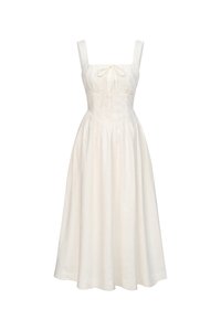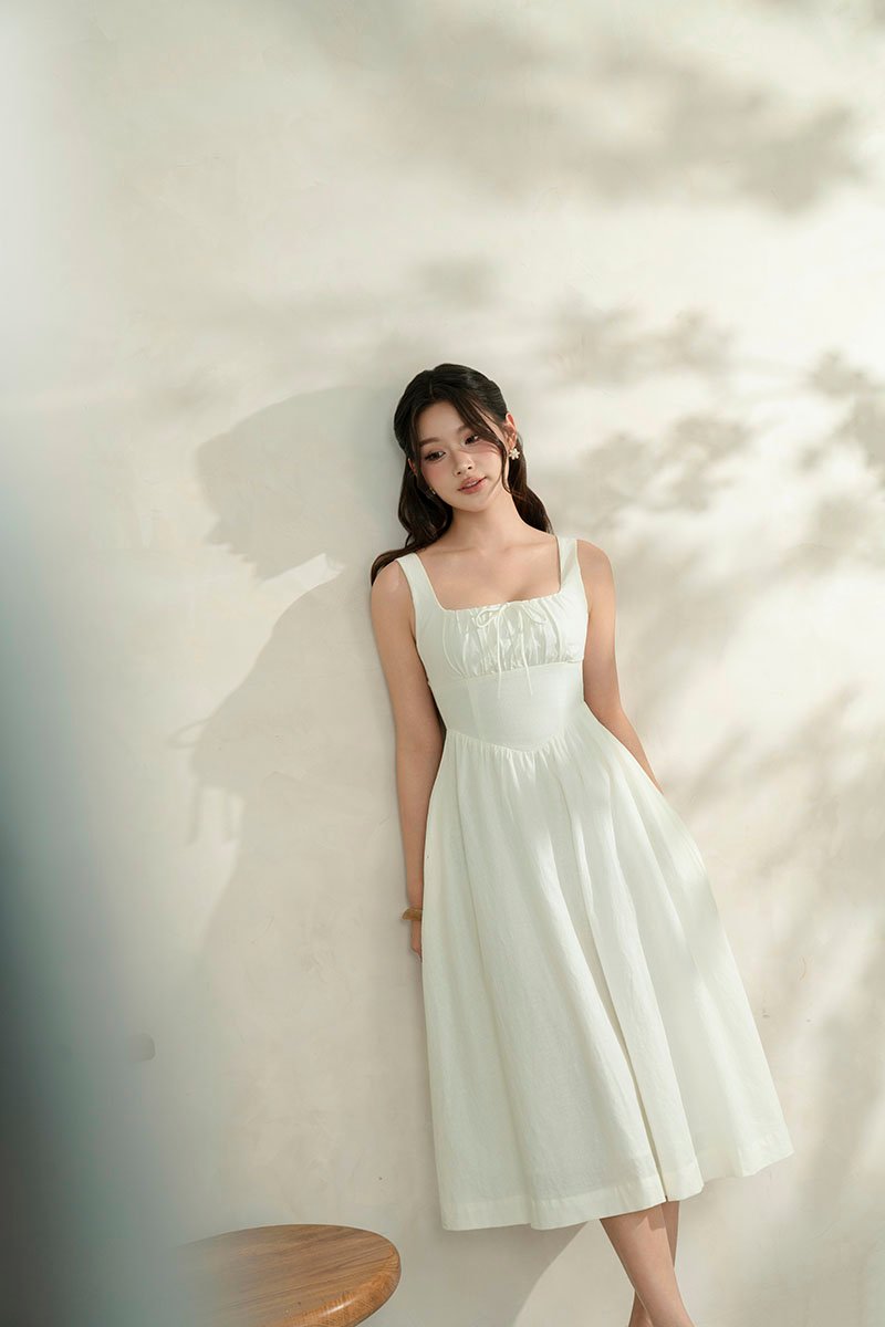 Lucia Padded Milkmaid Midi Dress in Iconic White