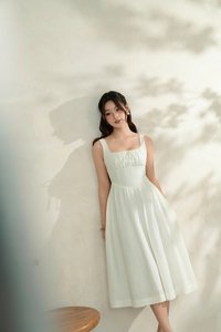 Light and airy fabric ensures all-day comfort, while intricate pintuck details and a soft corset effect flatter the waist without feeling restrictive. The midi length keeps the look polished yet relaxed, and functional pockets add a touch of practicality. Romantic, versatile, and wearable, Lucia is the perfect go-to for days when you want to look gracefully put-together with minimal effort.