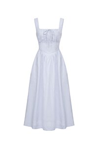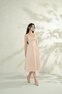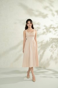 Light and airy fabric ensures all-day comfort, while intricate pintuck details and a soft corset effect flatter the waist without feeling restrictive. The midi length keeps the look polished yet relaxed, and functional pockets add a touch of practicality. Romantic, versatile, and wearable, Lucia is the perfect go-to for days when you want to look gracefully put-together with minimal effort.