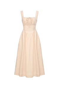 Lucia Padded Milkmaid Midi Dress in Vanilla Cream