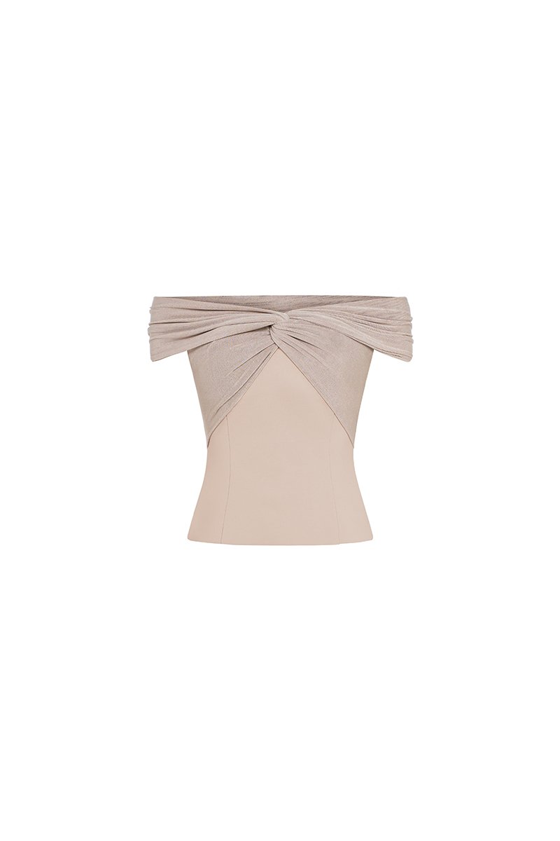 Maelle Padded Twist Off Shoulder Top in Light Bisque