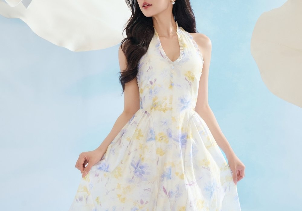 Maisie is a halter maxi dress designed to create a refined, feminine silhouette with ease. The halter neckline draws focus upward, while a cinched waist defines the figure before flowing into a soft flared skirt.The flared skirt creates fluid movement as you walk, giving the dress its soft, expressive character. Finished with a ribbon tie at the back and padded bust for fuss free wear, Maisie is made for weddings, celebrations, and moments that call for quiet confidence.