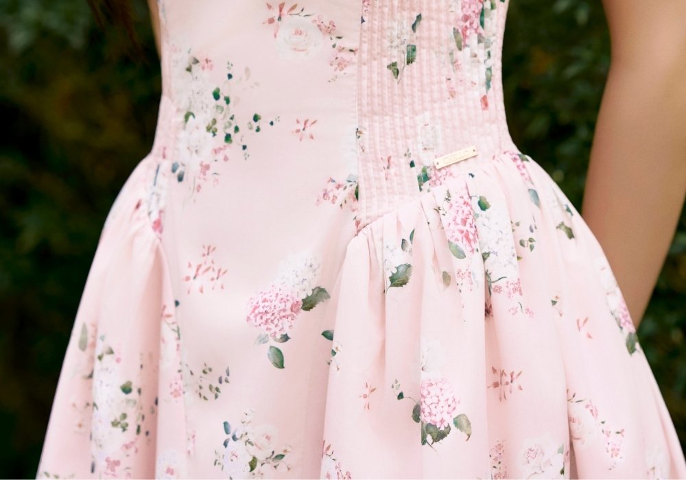 Monroe is a romantic midi with gentle structure through the bodice. Pintuck detailing creates a softly cinched effect at the waist, while the skirt opens into flowing volume below. Ribbon halter ties frame the neckline with a delicate finish. A dreamy silhouette that feels timeless and feminine.