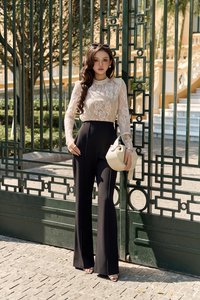 Romantic yet polished, the Morgan Lace Top is an easy way to instantly elevate your work and weekend outfits. Crafted from intricate, delicate lace, it offers just the right amount of sheerness while the high neckline keeps the look refined. The long line length makes it perfect for tucking into tailored pants or skirts, and the long sleeves give your arms coverage without feeling stuffy. Subtle shoulder pads add a touch of structure and presence, so you look effortlessly put together from desk to dinner.