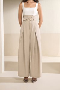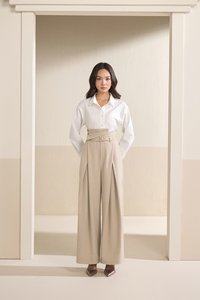 The Parker 2-Way High Waist Pants are designed with versatility in mind, featuring a clever 2-way waistband that can be worn buttoned up for a polished look or folded down for a more relaxed style. A complimentary belt cinches the waist for a flattering fit, while the high-waisted cut works perfectly for tucking in tops and pairs beautifully with cropped styles. The wide-leg silhouette moves gracefully with every step, and functional pockets add a practical touch. Crafted from lightweight tailored fabric, this piece is perfect for staying comfortable in hot and humid weather.