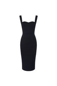 The Reverie Padded Mesh Back Pencil Dress is a modern classic with subtle romantic details. The sweetheart neckline beautifully frames the collarbones and décolletage, while thick straps are thoughtfully positioned to discreetly cover underarm bulges. At the back, an elegant crossover mesh panel adds a soft, refined touch without compromising on coverage. Designed in Chello’s signature ponte fabric for its stretch, structure, and easy care, Reverie features a side invisible zipper for ease of wear, a back slit for movement, and a padded bust for your convenience. Perfect for both work and evening occasions, it is a piece that blends polish with understated allure.
