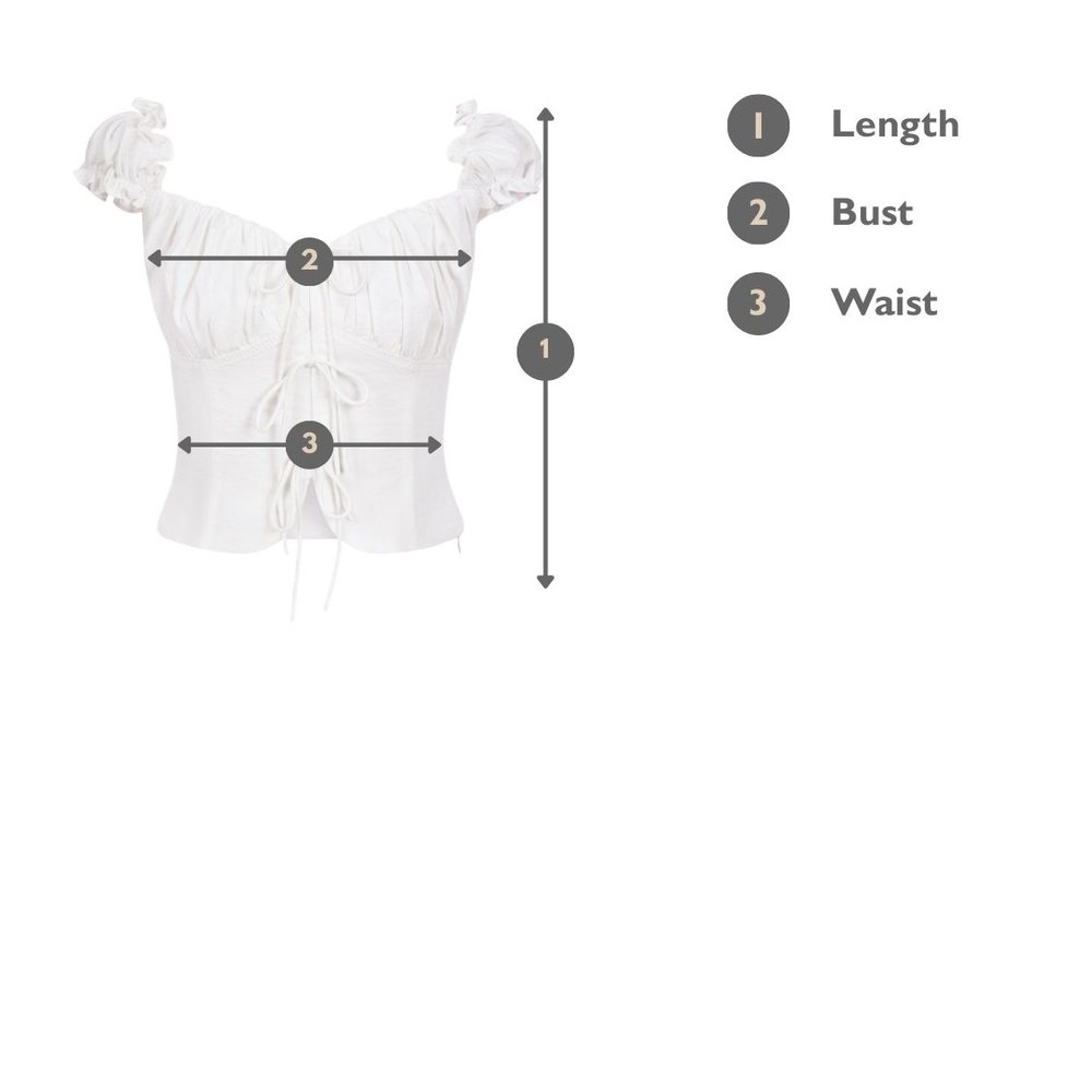 Delicate cap sleeves adorned with dainty ruffles exude femininity, while the elasticated design offers versatility—wear it on or off the shoulders for a chic twist. The faux ribbon opening adds a touch of sophistication and ensures security. A flattering V-neckline draws attention to the collarbones, and soft pleats on the bust enhance Rochelle's feminine appeal.