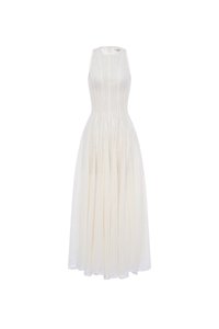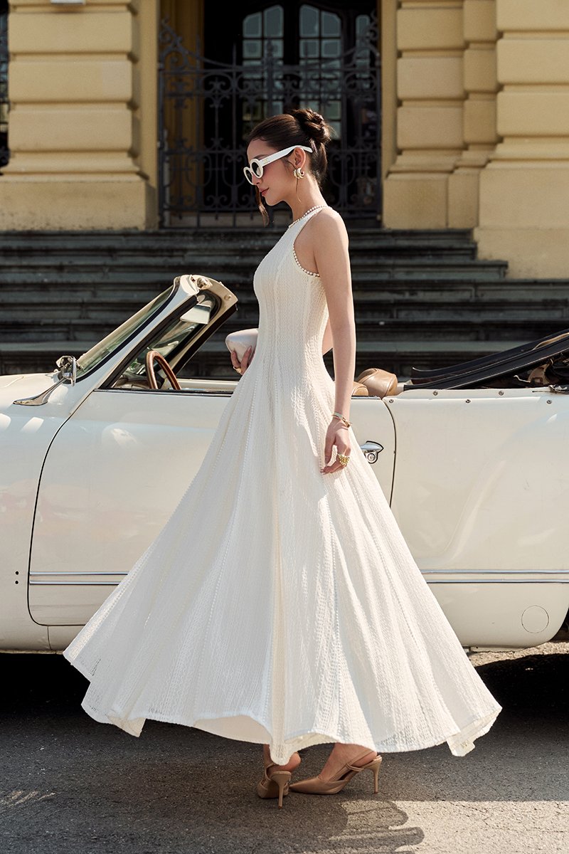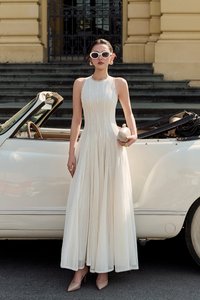 The Thea Gusset Maxi Dress is made for days and nights when you want to feel effortlessly graceful. Cut with a conservative round neckline that keeps things elegant, it skims through the bodice before opening up into a soft, full skirt. Hidden gusset panels add subtle volume and movement at the hem, so the dress swirls beautifully with every step and looks stunning in photos. Delicate trims frame the armholes for a dainty finish, while the light, airy fabric keeps you comfortable even when worn all day. Completed with an invisible back zipper and padded bust for fuss-free wear, Thea is that easy, polished maxi you will reach for whenever you want to look refined without trying too hard.