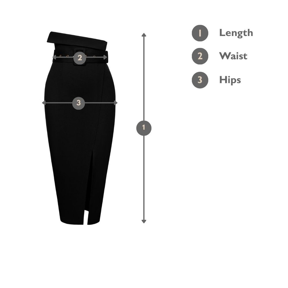 Introducing the Tory Fold Over High Waist Pencil Skirt — the impeccable origami-inspired folding details elevate this skirt to statement-making new heights. Featuring an asymmetrical high waist, this skirt becomes a statement piece that matches effortlessly with any minimalistic top. The complimentary belt cinches in your waist, giving you a snatched silhouette, while the front slit not only elongates your legs but also ensures ease of movement. The intricacy of the folds adds an avant-garde touch, making it a fashion-forward piece for any occasion.